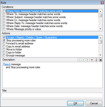 Powerful server-side filters and rules can be applied to all users, specific users, groups or domains on the server. Server-side rules can enforce business processes, move messages from folder to folder, make copies, run applications, extract attachments to folders, add and modify headers and footers, and more.